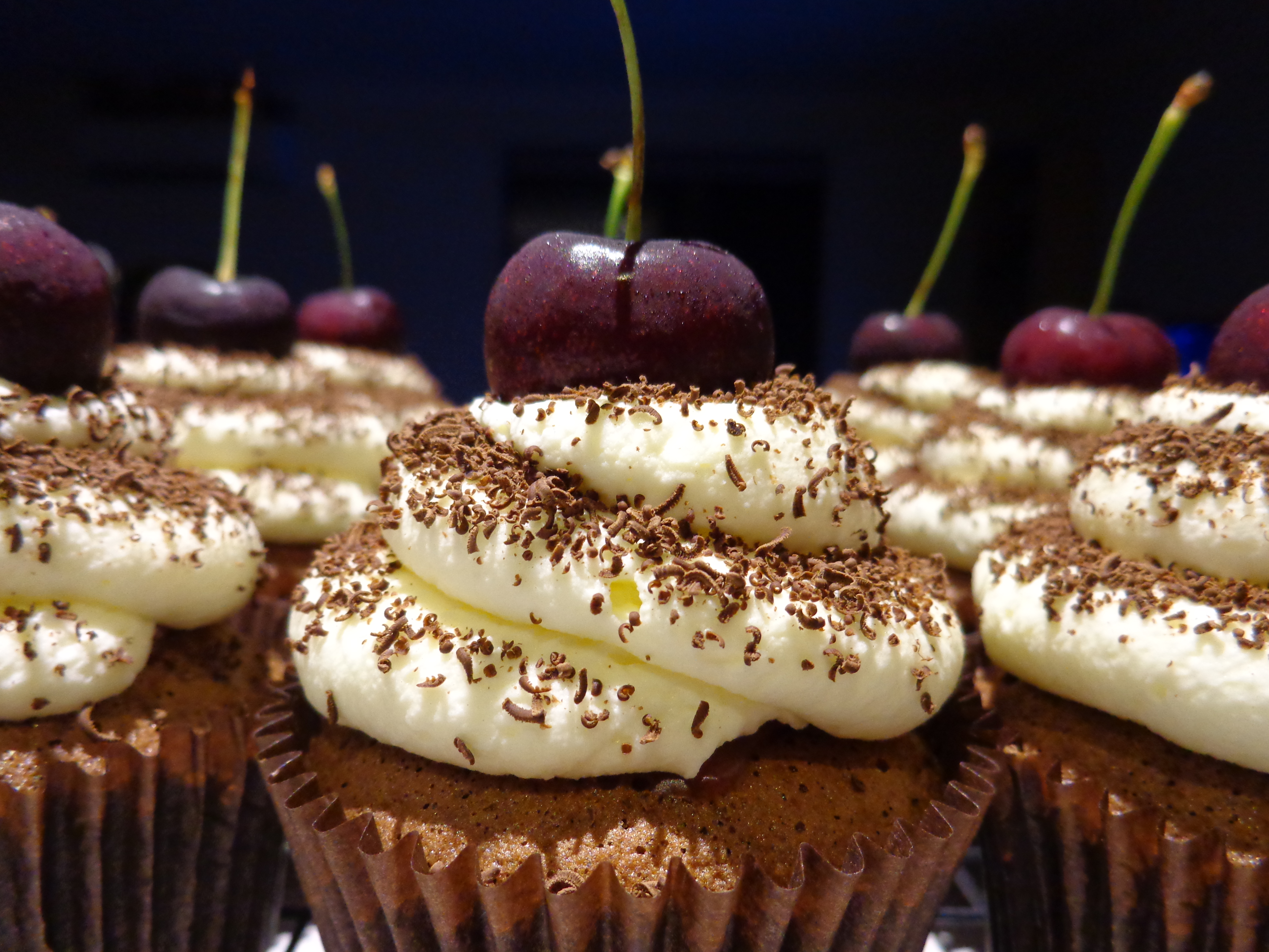 The cupcakes were created for one of the lovely ladies I work with who was leaving to go onto maternity leave. Her favourite style of cake is Black Forest but being a work party I wanted something a little easier to share. Hence breaking down the key elements of a black forest cake into a cupcake version: chocolate cupcakes, cherry filling, whipped cream, chocolate shavings and of course a cherry on top!